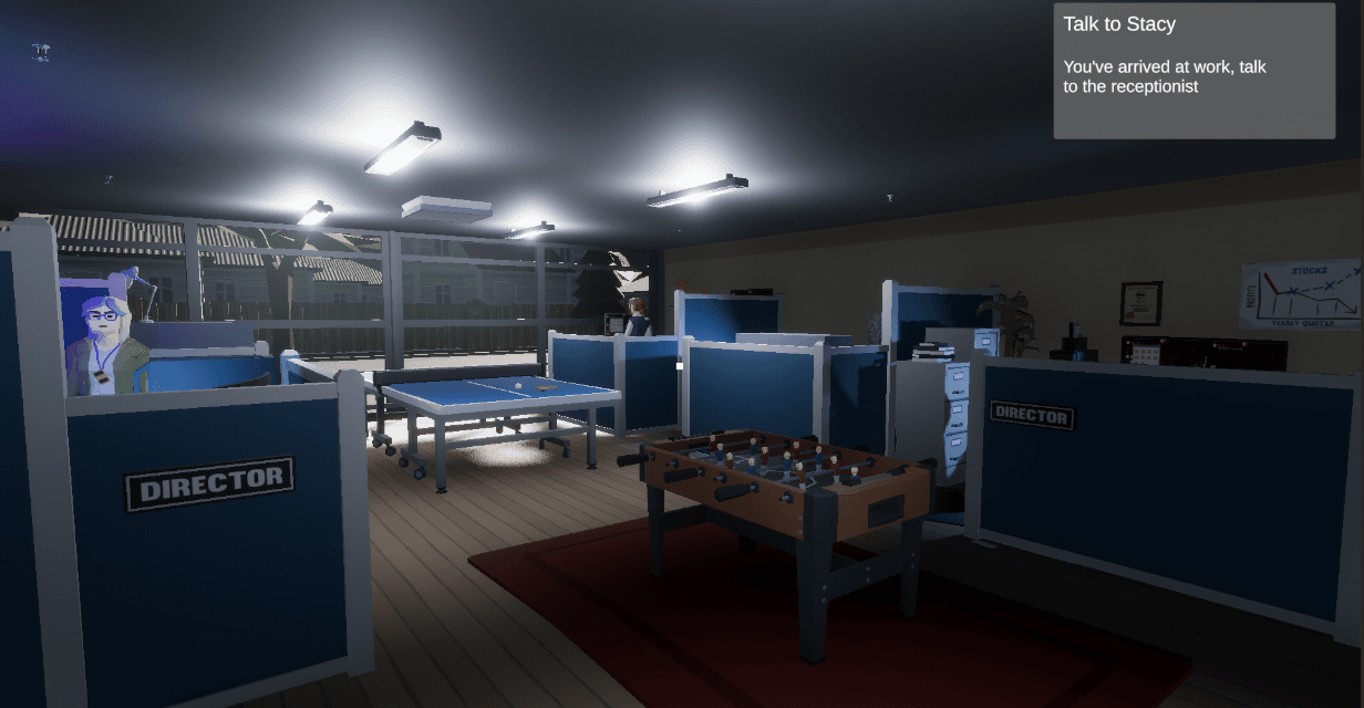 Navigate the lively and chaotic world of the studio, where every colleague has something to say—some offer helpful advice, while others might distract you from your mission. As you move through the studio, the pressure mounts, and every interaction could either aid or hinder your progress.