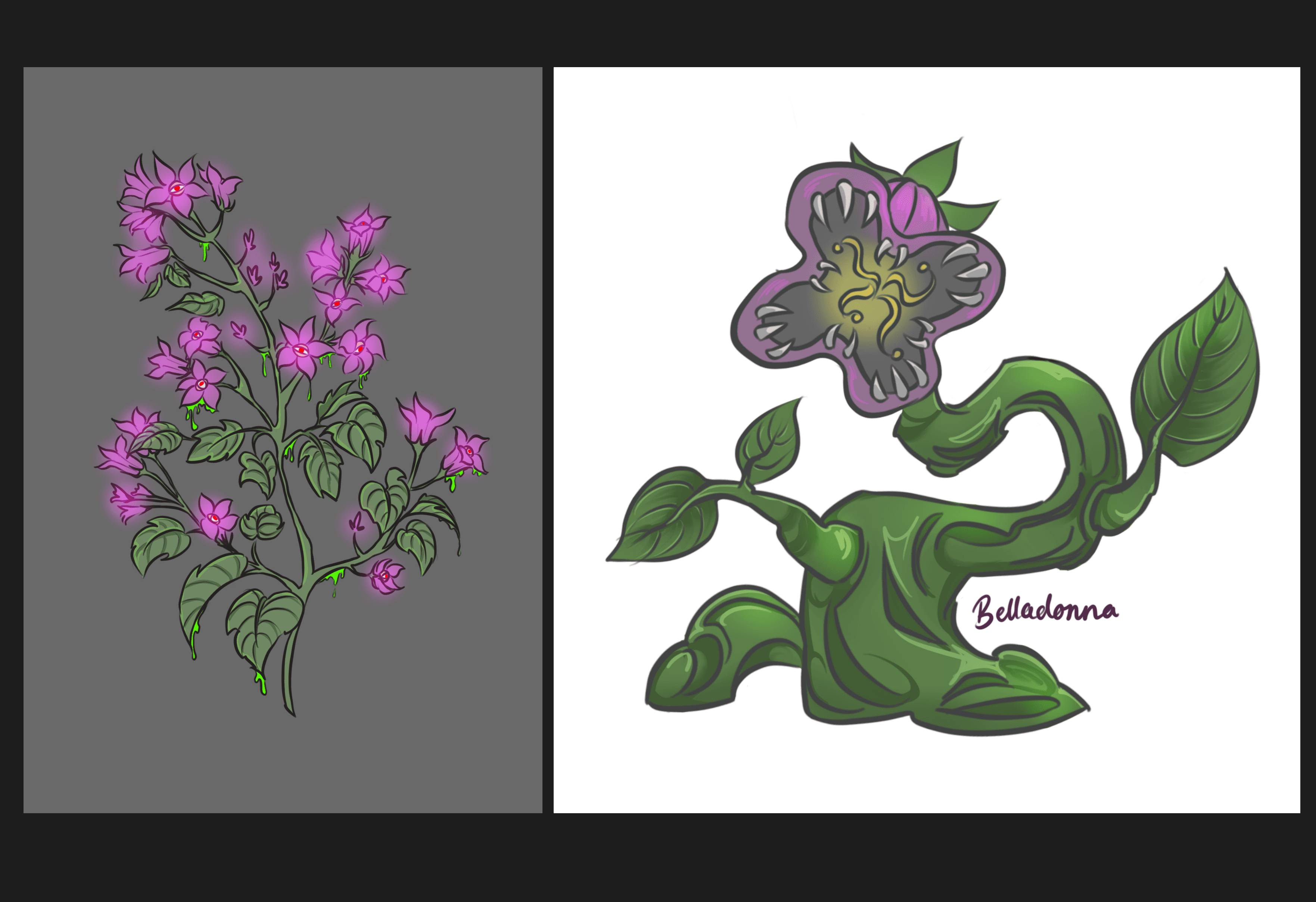 The Plant Monster is a creature of horror made to be an enemy in a small interactive game where you fight your corrupted garden as a witch. The monster is based on the Belladona flower with inspiration from the movie classic: Little Shop of Horrors.